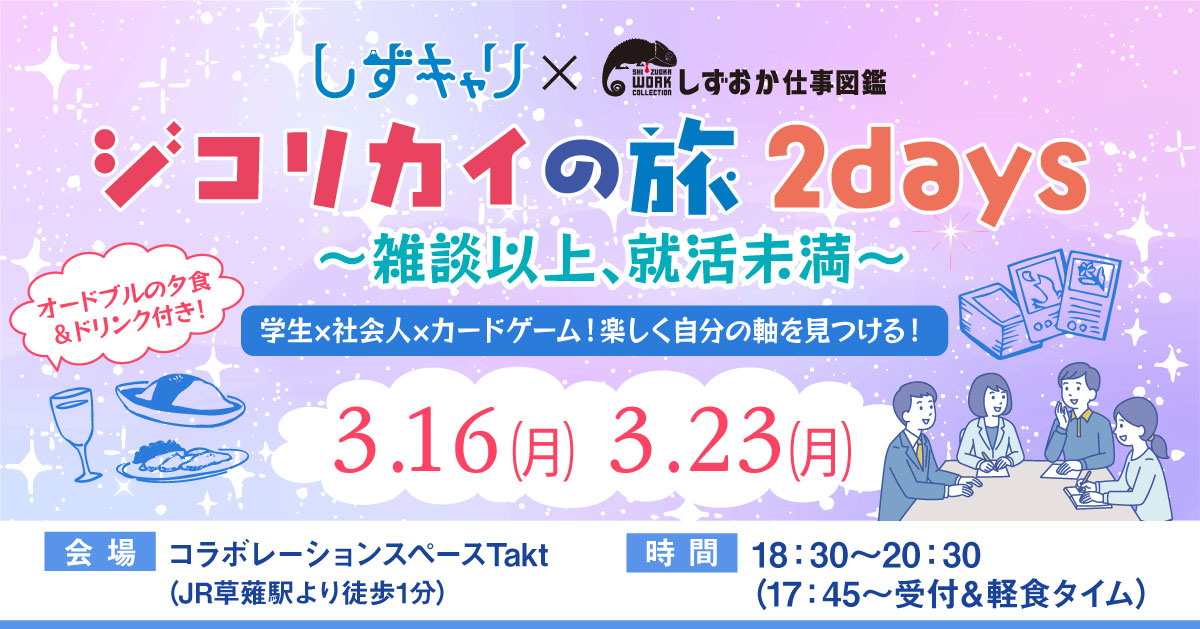 静岡県に特化した就職情報サイト「しずキャリ」運営の㈱就職情報センターと、「しずおか仕事図鑑」運営の㈱静岡新聞社の共同開催イベントです。